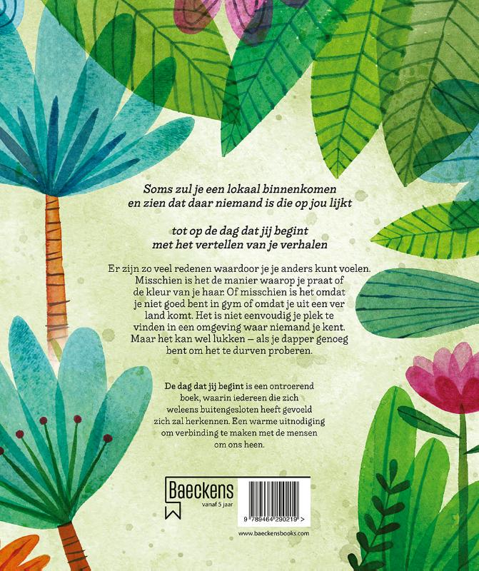 De dag dat jij begint is een ontroerend boek, waarin iedereen die zich weleens buitengesloten heeft gevoeld zich zal herkennen. Een warme uitnodiging om verbinding te maken met de mensen om ons heen.